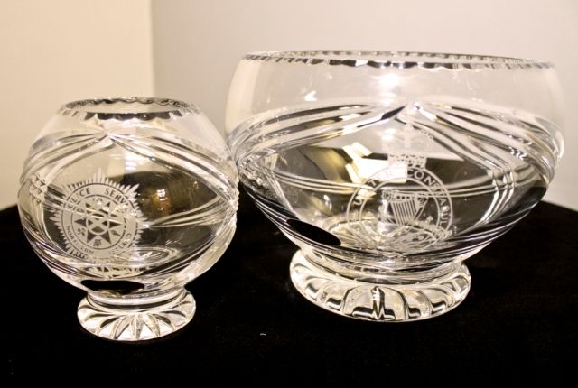 Crystal bowl in presentation box. Belfast crystal with "Mourne" crystal cut. Available with PSNI or RUC crest engraved.